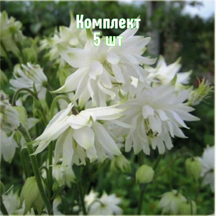 Аквилегия White Barlow — высокорослая многолетняя (до ~80 см) с раскидистым кустом, крупными дважды-тройчатыми листьями и мощной корневой системой. В нашем питомнике комплект 5 саженцев по цене 4 — выгодное предложение для оформления цветников и миксбордеров.