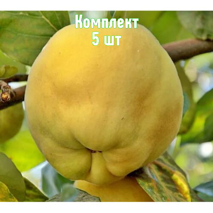 Этот комплект включает 5 саженцев айвы яблоковидной формы «Золотистая» — крупноплодный сорт с плодами 250–400 г, округлой формой и светло-жёлтой, золотистой кожицей с лёгким опушением. Мякоть светло-кремовая, мелкозернистая, сочная, сладко-кислая с приятным ароматом; практически без каменистых клеток. Главное достоинство — высокая зимостойкость и отличная лежкость плодов.