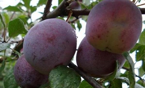 - Плоды 30–50 г, округло-овальные, тёмно-малиновые с желтыми крапинками и голубоватым налётом.