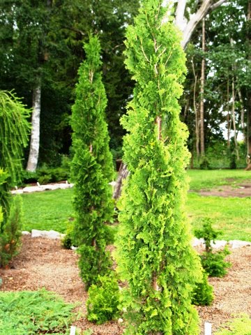 Туя Degroot's Spire-NB прекрасно подходит для создания плотных живых изгородей высотой 4-5 метров, которые не требуют стрижки и занимают минимум пространства, формируя эффектную тонкую зеленую стену. Идеально подходит для использования на небольших участках, как в одиночных, так и в групповых посадках.