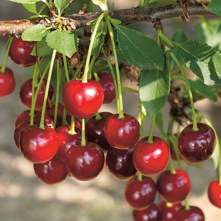 Саженец вишни сорта Алекса — морозостойкий и неприхотливый плодовый куст/дерево высотой 3–4 м с густой раскидистой кроной и тёмно‑зелёной листвой. Плоды крупные, тёмно‑красные, с сочной сладко‑кислой мякотью, созревают в середине лета.