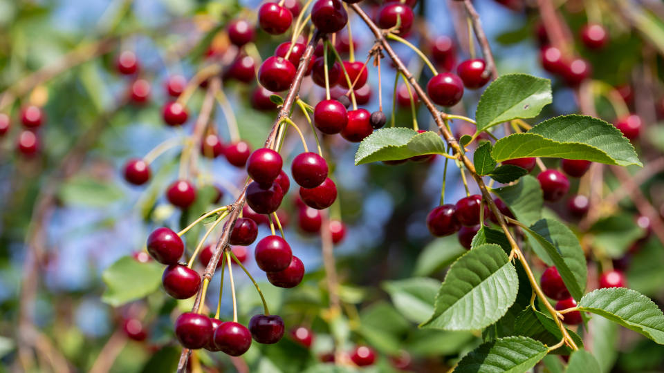 - Плоды: широко-сердцевидные, мякоть тёмно-красная, косточка среднего размера, легко отделяется.